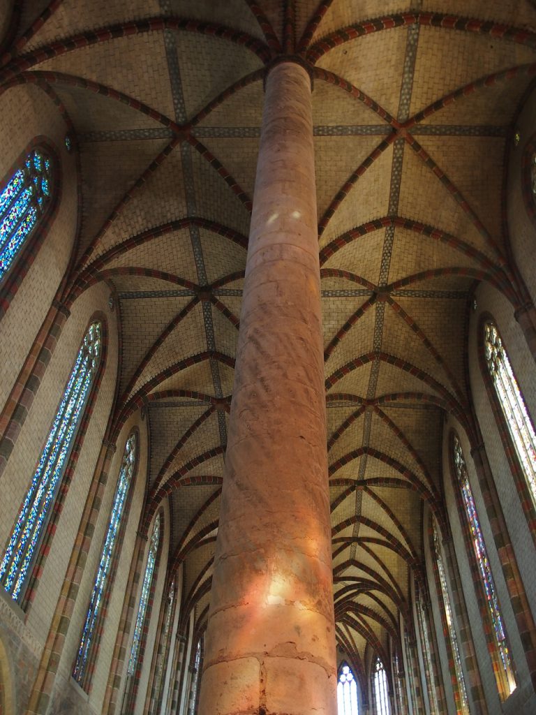 [6] Im Vergleich dazu ist ein anderes Kleinod der Kirchenbaukunst extrem schlicht und doch, je nach Geschmack, viel eindrucksvoller: die Ursprungskirche des Dominikanerordens in Toulouse, wo die Gebeine des Thomas von Aquin aufbewahrt werden.